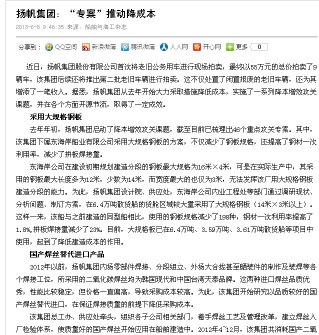 船舶與海工:揚帆集團:“專案”推動降成本