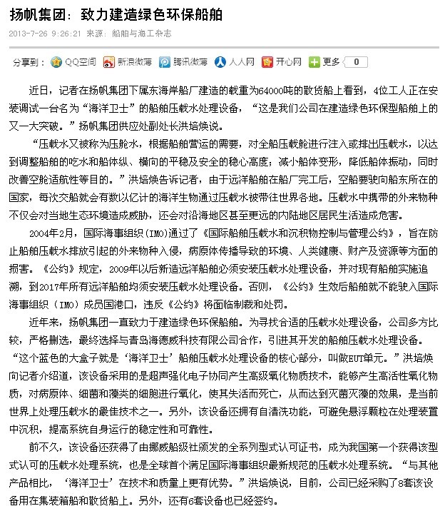 船舶與海工:揚帆集團:致力建造綠色環保船舶