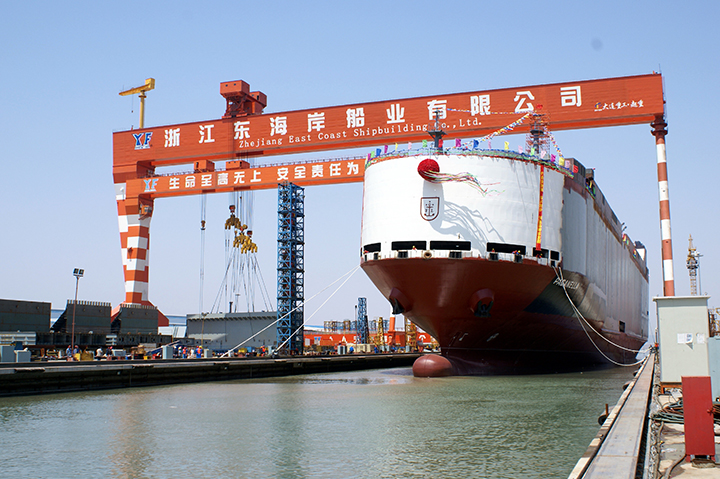 浙江東海岸船業有限公司位于浙江省舟山市螞蟻島,具有豐富的深水岸線資源和優越的自然條件,總占地面積79萬平方米。船廠設施設備先進,布局合理,配備中型船塢、舾裝碼頭各一座,主要設備為600噸門座式吊機及二次涂裝處理設備等,具備20萬噸級以下各類船舶產品的建造能力,年造船能力100萬載重噸以上。